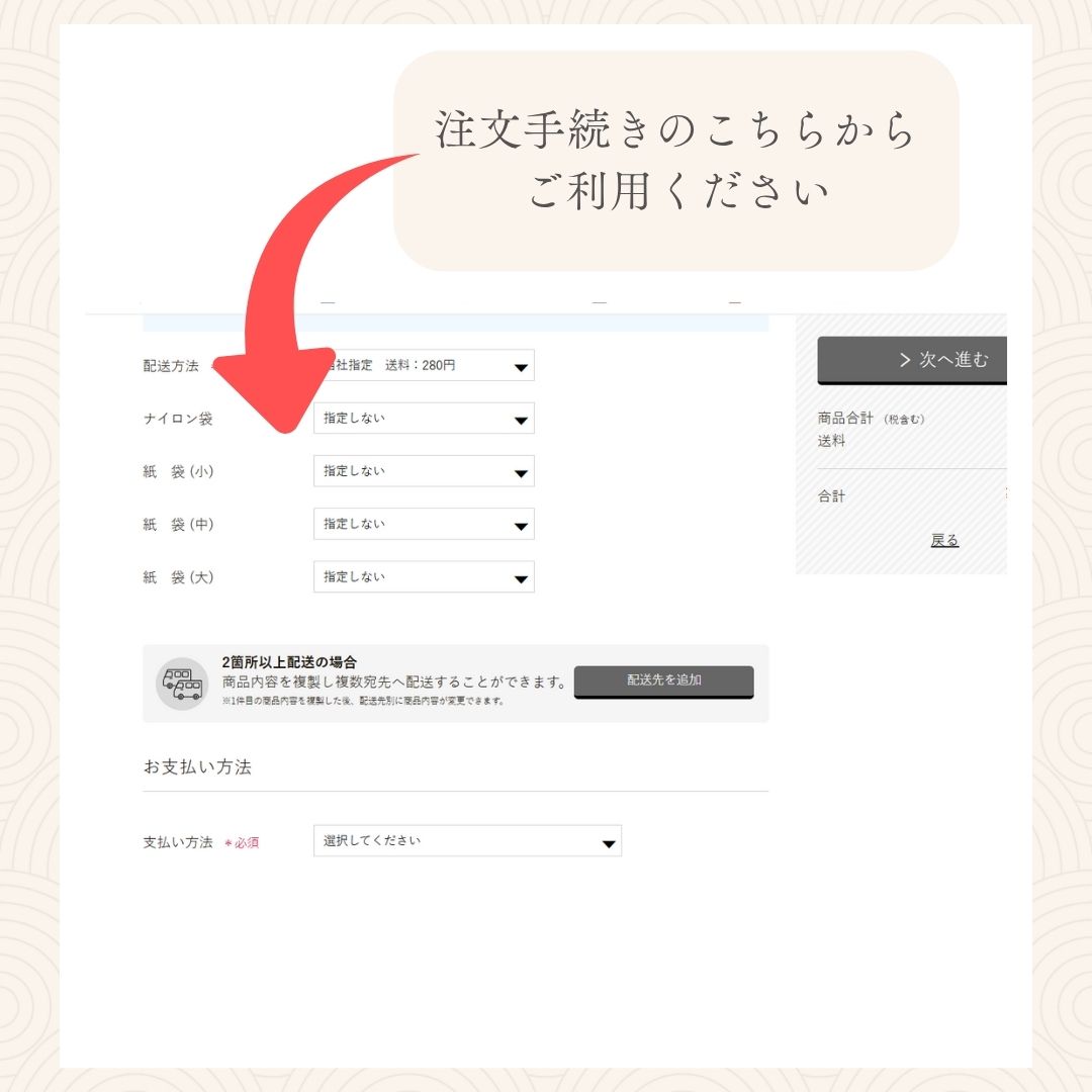 <注文手続き>時に選択できるようになったので、必要枚数ご購入ください。
